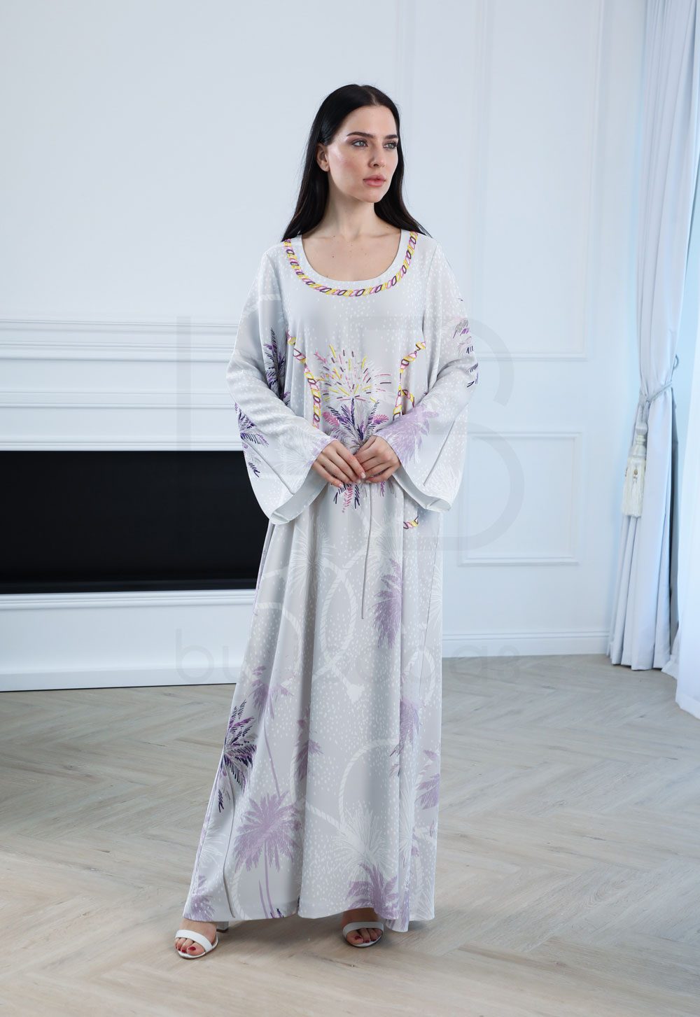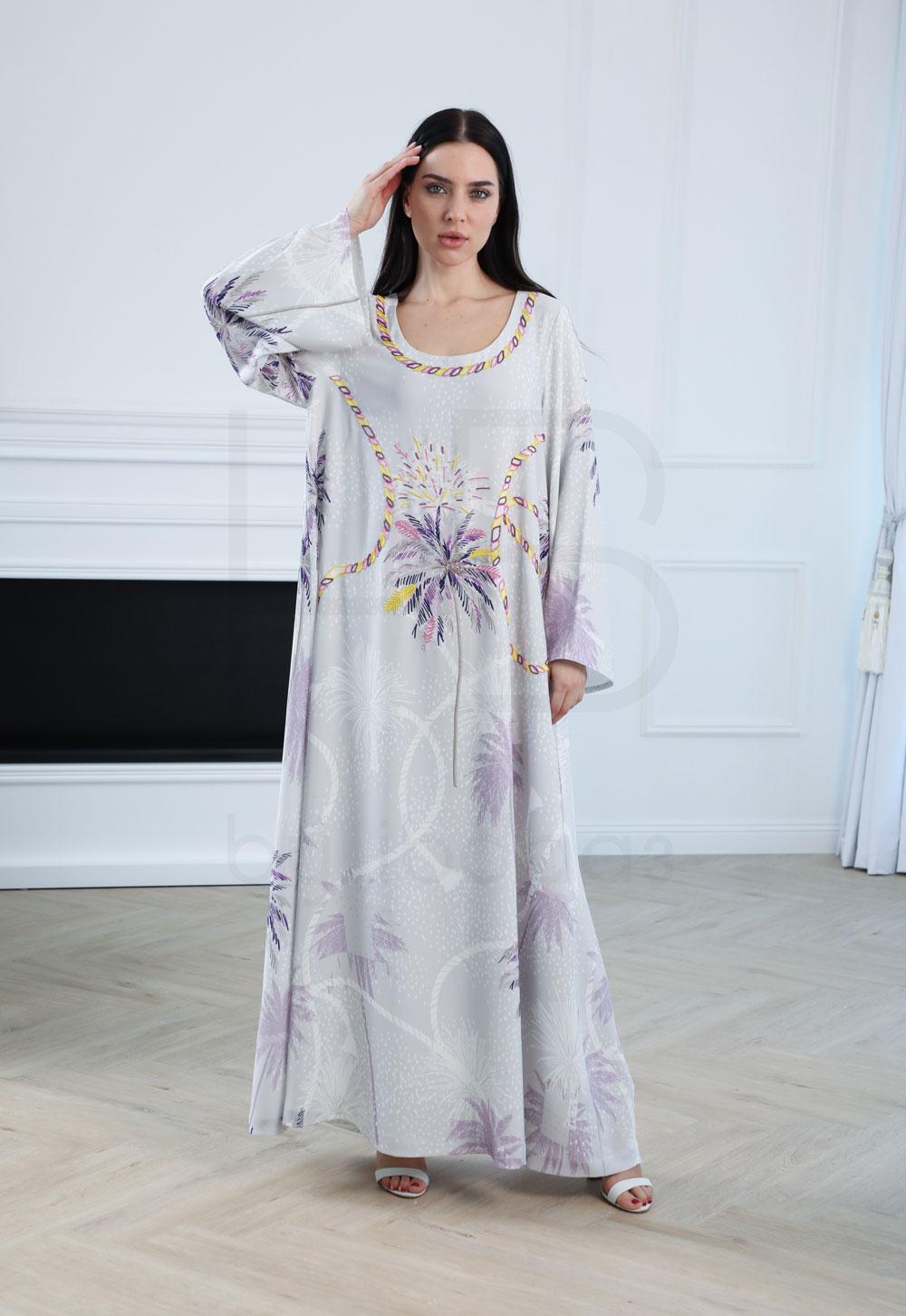 Perfect for casual wear, lounging, or light occasions, this kaftan blends modern simplicity with artistic flair, evoking a sense of calm and elegance.