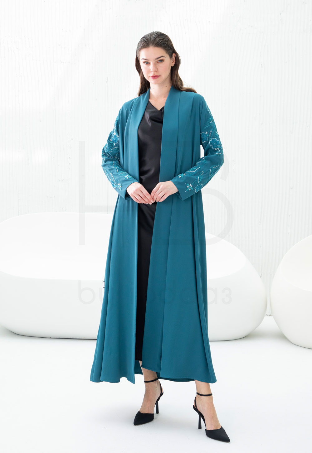 With its clean lines and understated luxury, this abaya blends modern minimalism with traditional artistry — ideal for formal occasions, evening wear, or as a statement piece that balances simplicity and elegance.