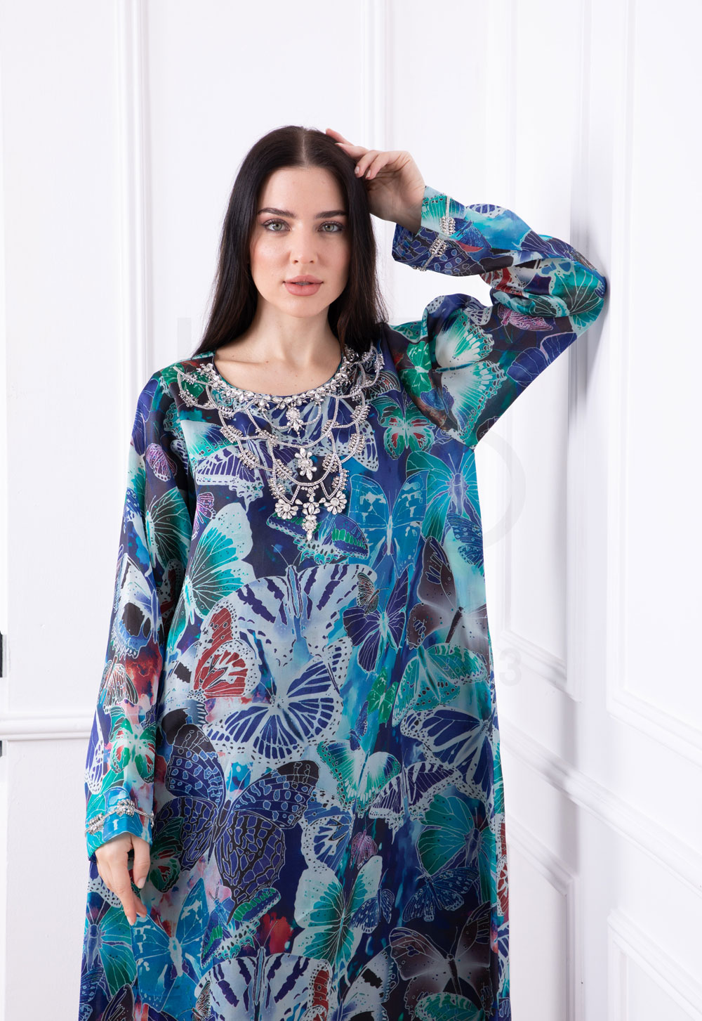 Perfect for special occasions or as a statement piece, this kaftan blends vibrant artistry with traditional craftsmanship, turning every glance into a celebration of beauty.